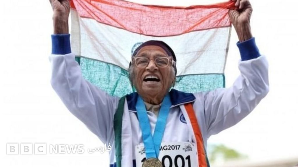 من کائور، دونده ۱۰۱ ساله هندی که در مسابقات جهانی مسترز در اوکلند اول شد، پیروزی خود را با رقص جشن گرفت.