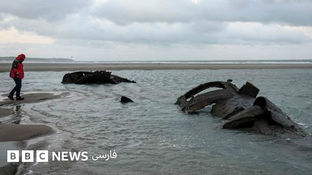 بقایای یک زیردریایی آلمانی متعلق به جنگ جهانی اول پس از آن که دههها از مدفون شدن آن گذشته، بتدریج در یکی از سواحل شمال فرانسه به سطح آب می آید.