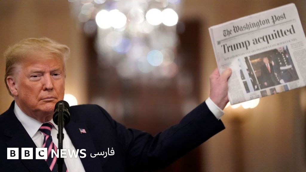 آقای ترامپ گفت: "اذعان می کنم که در زندگی ام اشتباهاتی کرده ام... اما نتیجه نهایی این است" و با این حرف خبر اول امروز روزنامه واشنگتن را به حاضران نشان داد: "ترامپ تبرئه شد."