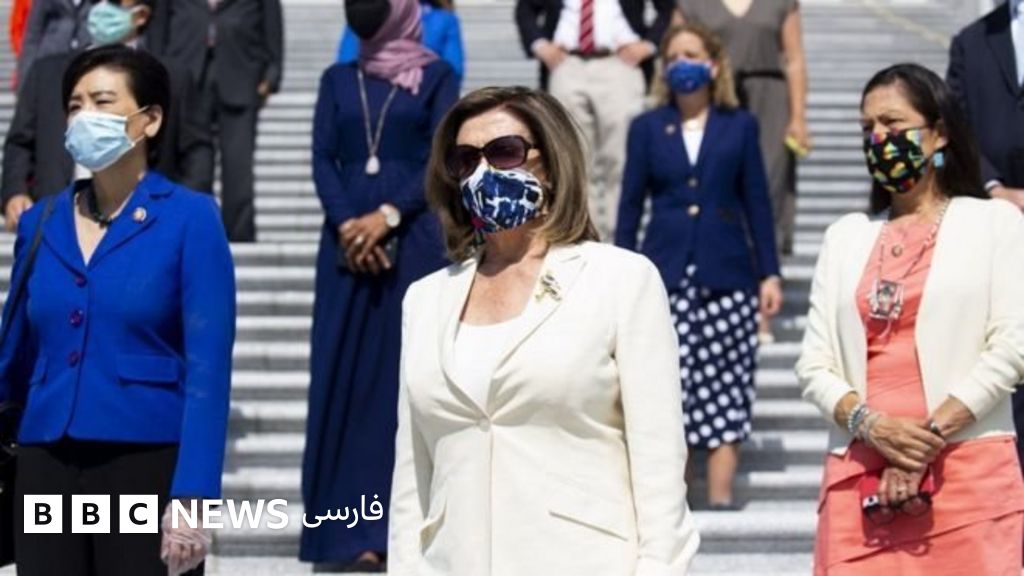 نانسی پلوسی، رئیس دموکرات مجلس روز پنجشنبه نمایندگان سیاهپوست کنگره را در پله های ساختمان کنگره جمع کرد و به آنها گفت: "دقیقا یک ماه پیش جورج فلوید آخرین جمله را گفت - نمی توانم نفس بکشم - و مسیر تاریخ را تغییر داد."