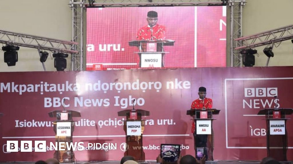 Ifeanyi Araraume of APGA, Hope Uzodimma of APC and Emeka Ihedioha of PDP wey collect invitation finish, even promise to attend di BBC Igbo governorship debate on Friday for Imo State southeast Nigeria fail to show face for di debate.
