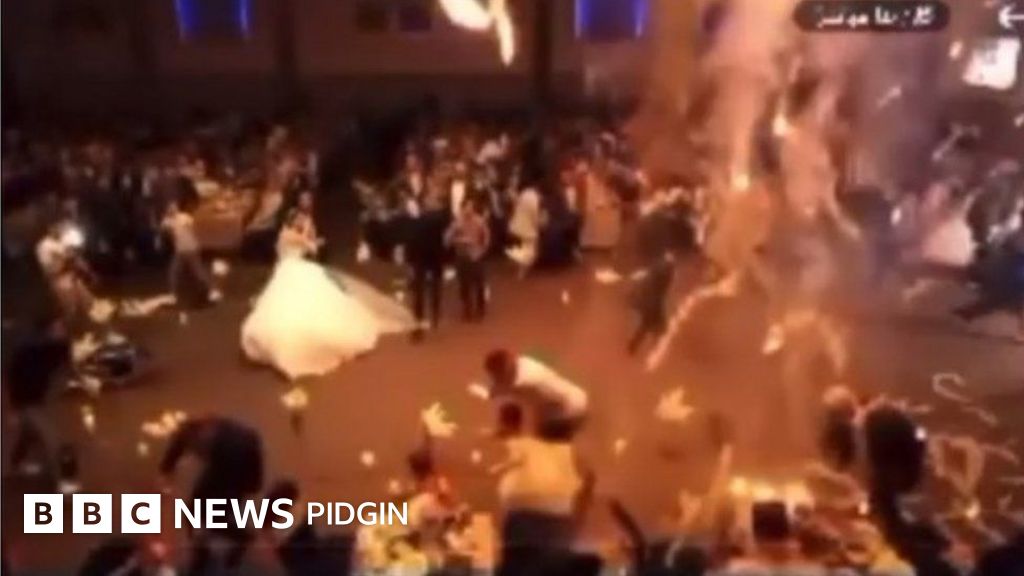 Anoda wedding guest, Rania Waad, wey her hand burn tok say na as di bride and groom dey do slow dancing "fireworks start to climb to di ceiling, di whole hall catch fire".