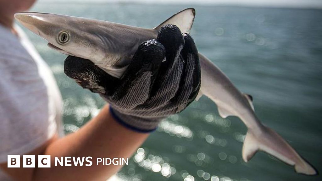 "Sharks na carnivorous and di main exposure route for many chemical pollutants na di dietary route. E dey veri likely say di animals our sharks prey on - crustaceans [and] oda fish - dey contaminated," Rachel Davis tok.