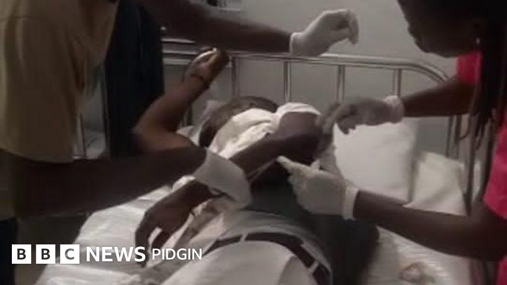 One Nnamdi Nwogu begin share video of one supporter of oga Atiku wey dey hospital wit injuries. Di victim dey bleed for di video.