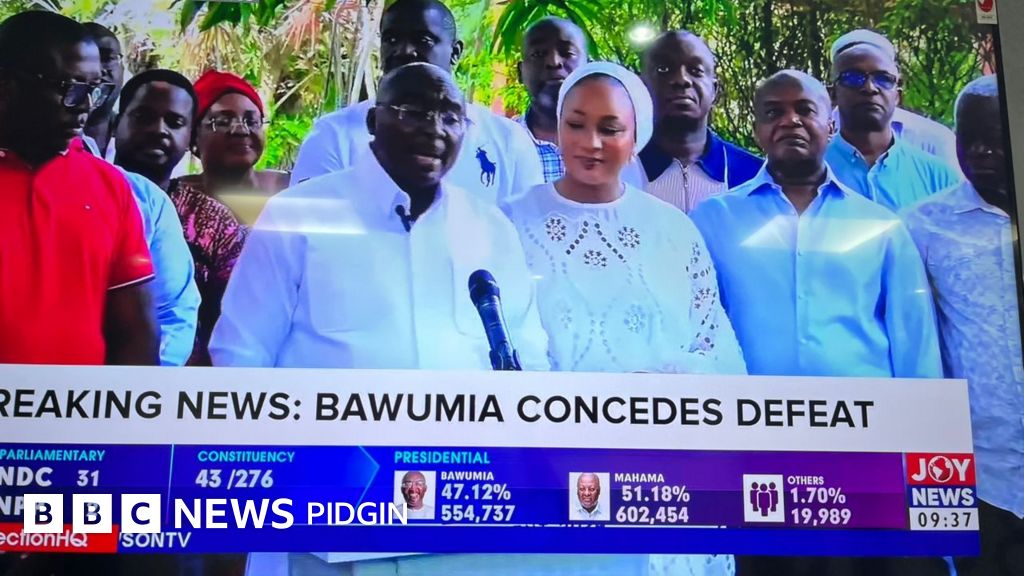 E say im concede defeat based on di provisional results from dia internal tallies from dia party wey show say presidential candidate of di NDC John Mahama don win di election and di NDC also win di parliamentary election, even though dem dey await final collation from a number of seat, but im believe say dat no go change di overall outcome.