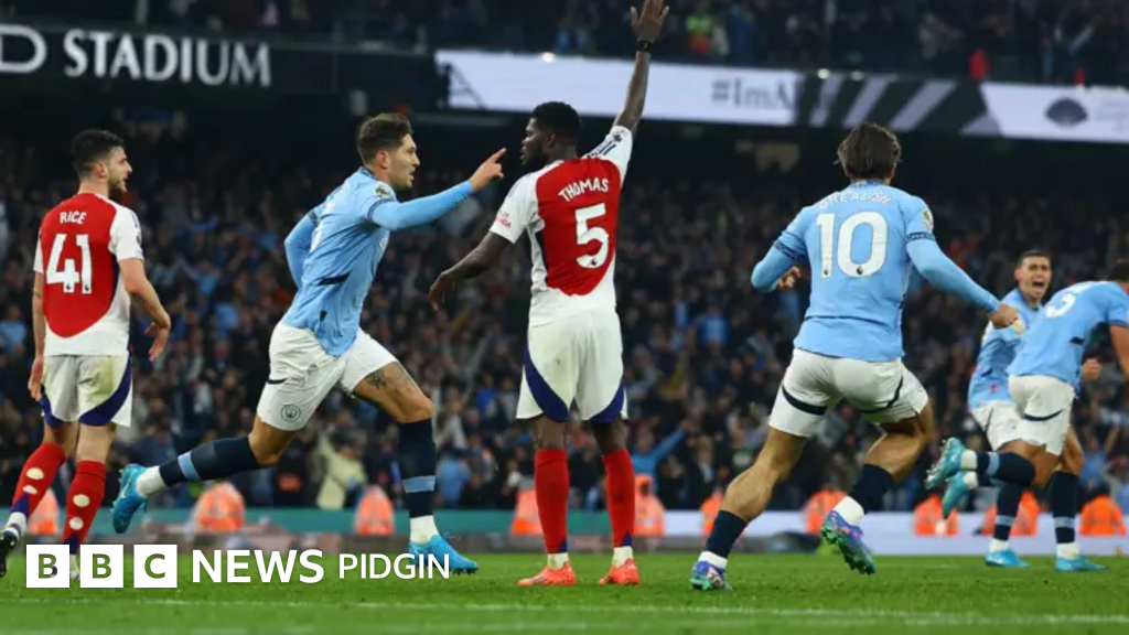 Manchester City wait until di last minute of added time before dem score di equalizer to draw 2-2 wit Arsenal.