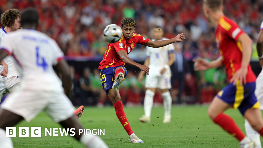 Referee don blow whistle to end di game. Spain beat France to qualify for di finals. 16 year-old Lamine Yamal na di star of di game as im set record as di youngest player to score and grab three assists for di Euros.
