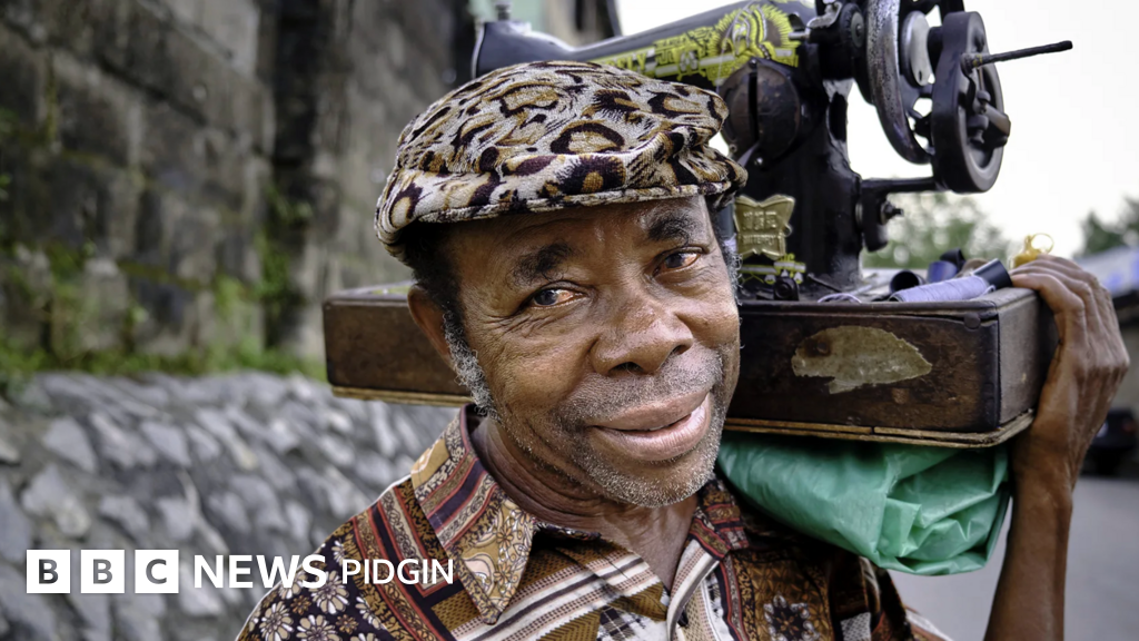 Dis na mobile tailors wey go carry dia sewing machine on top dia shoulders, dey waka about for street looking for pipo wey dem go mend clothes for, either to fix a zip here, or shape some trousers there.