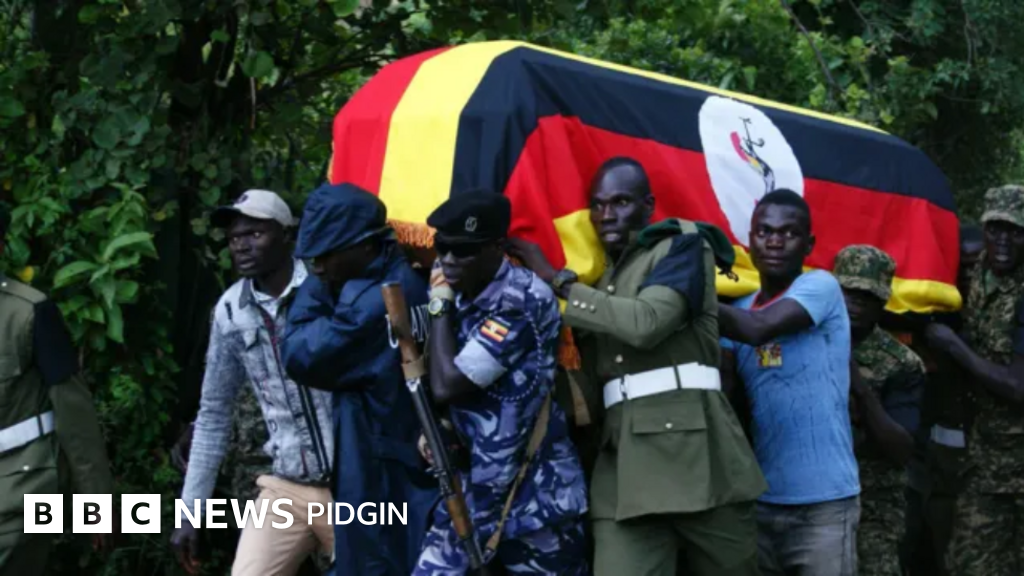Hundreds of people including leaders from her home country, Uganda, and neighbouring Kenya, wia Ms. Cheptegei live and train, bin dey expected to attend di funeral. Di service happun for di Amanang senior school for di district where dem give Cheptegei military honours.