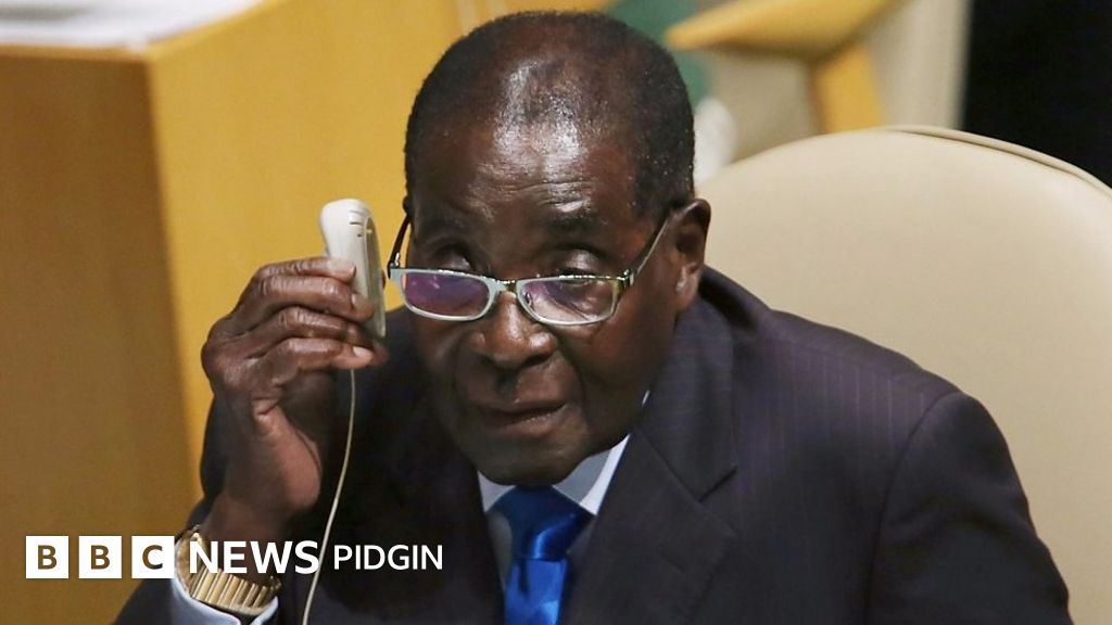 President Robert Mugabe don resign after 37 years wey im siddon-put for office.
