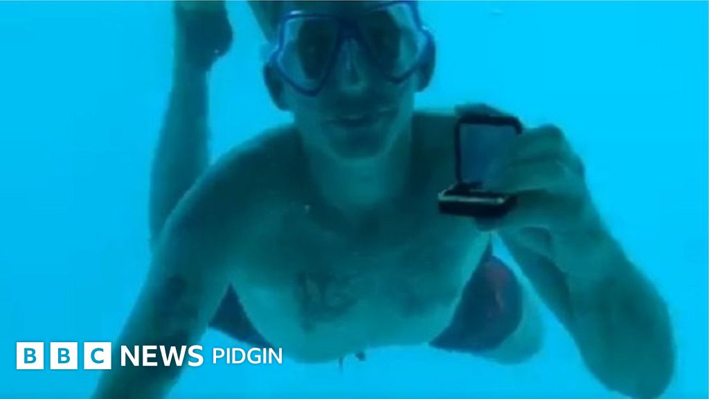 For video wey im babe Kenesha Anthoine feem, e show as im bin dive under di water hold paper and ring to propose but e drown before Kenesha fit reply.