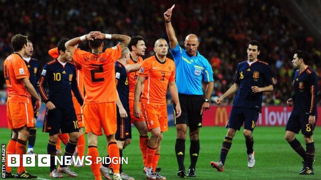 Howard Webb from England na im ref 2010 World Cup final match for South Africa; oda World Cup final match wey British officials don ref na for 1950, 1954 and 1974.