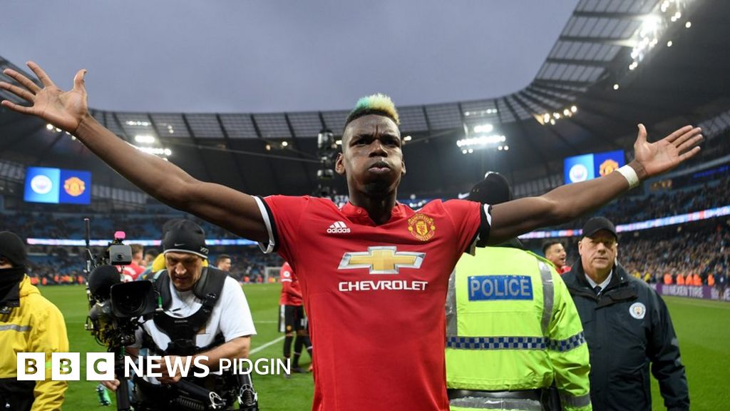 Paul Pogba name don dey trend for social media as Manchester United sama Manchester City 3-2 for City domot.