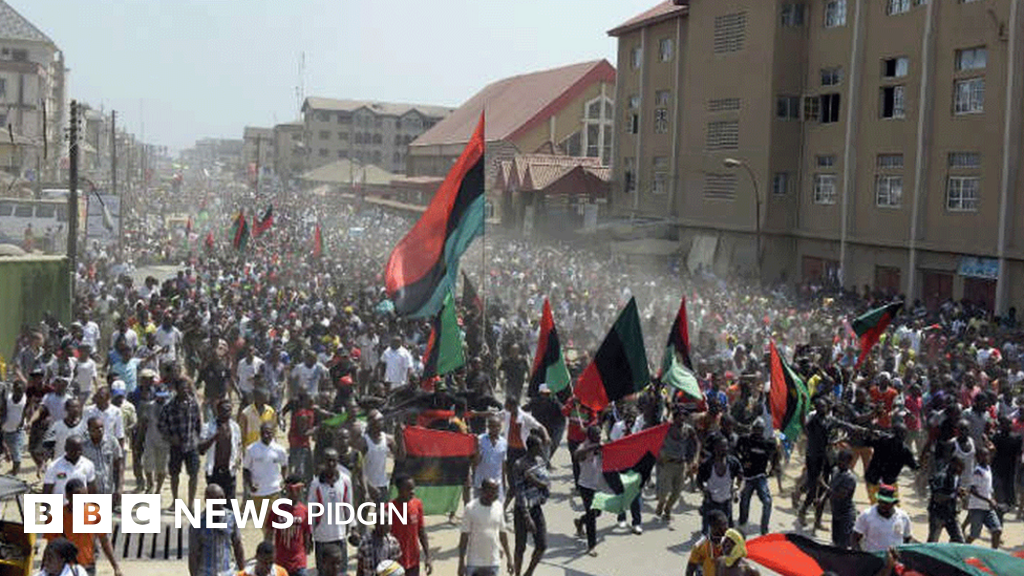 Na mainly di Igbo tribe dey di south-east part of Nigeria, and for there some people don dey protest for street, say dem want freedom to form dia own country wey dem call Biafra.