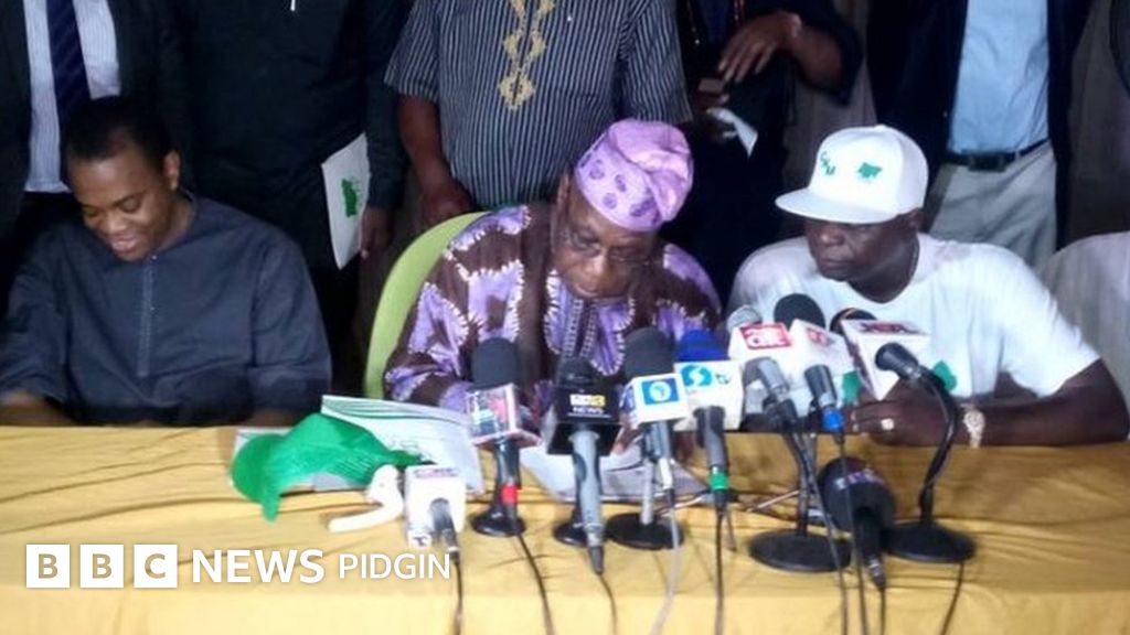 Obasanjo talk dis one for statement im read on Thursday for Ogun State, southwest Nigeria as im go di Secretariat of di Nigeria Union of Journalists for Oke Ilewo area of Abeokuta to launch im Coalition for Nigeria Movement.