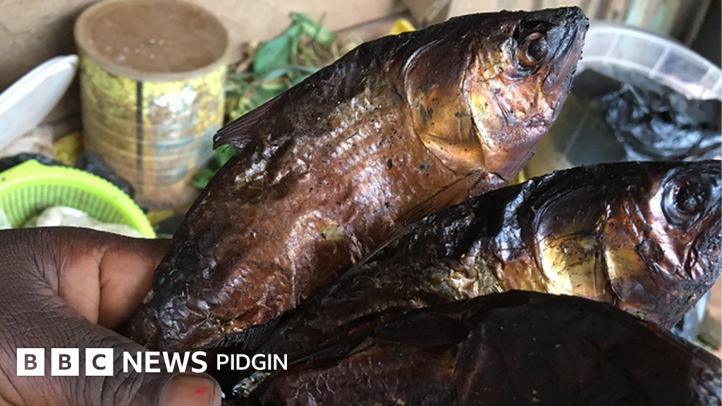 "Ah di cook groundnut soup and banane malaxser with Bifaga because e di give taste for chop even if some pipo before-before di check say na for poor man, e don cost now past fresh fish, Lucy Nteme, woman weh e di buy de fish tok.