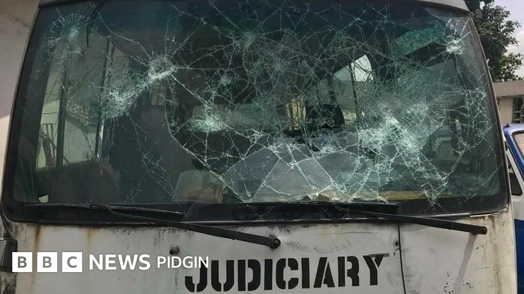 Di tin come turn anoda mata wen dem begin shoot gun, break di glass windows and doors of buildings wey dey for di courts and di windscreen of some moto wey park inside di court.