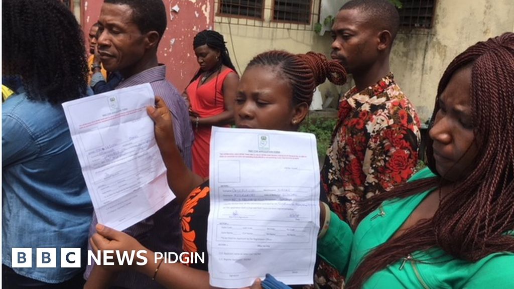 Pipo like Mary Nwohoobong Anthony tell BBC Pidgin say she come on Sunday for di registration but dem tell her to come back on Monday but since 6am wey she come, dem neva attend to her even though she don fill di registration form. She say, "I be di third person wey dem give number but dem neva attend to me."
