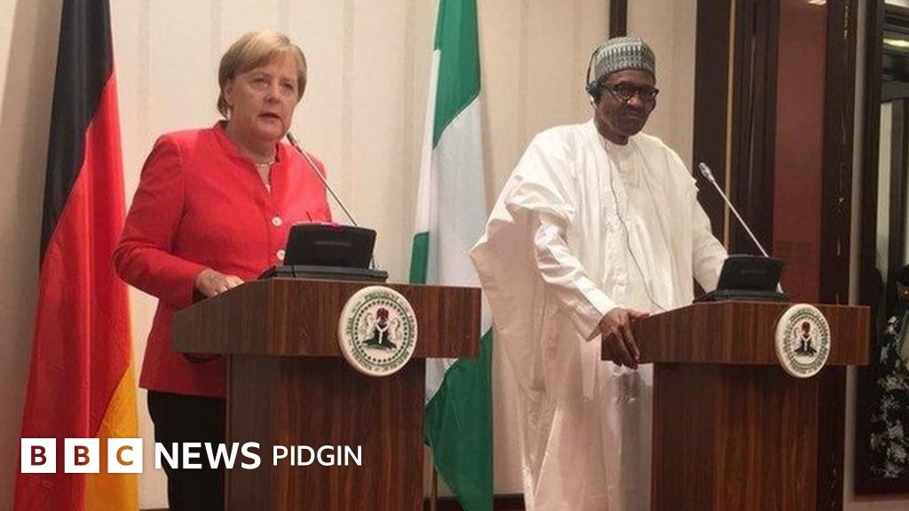 Merkel and Buhari gree say, if young pipo get work for Nigeria dem no go wan run comot go Europe.
