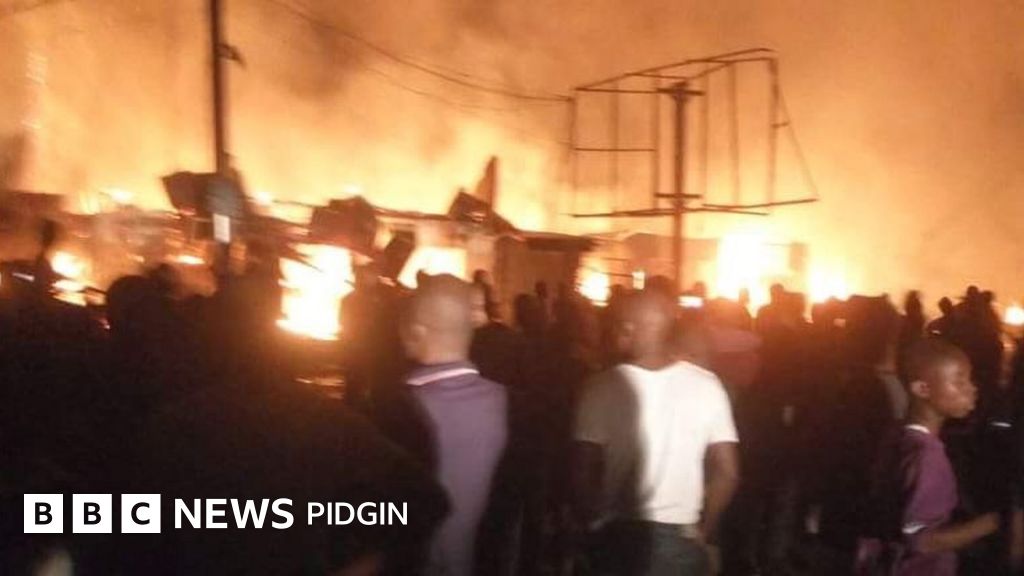 But for social media one pesin tok say jaguda boys chase di fire service wey show so dem fit use di chance tiff property of traders for di market.