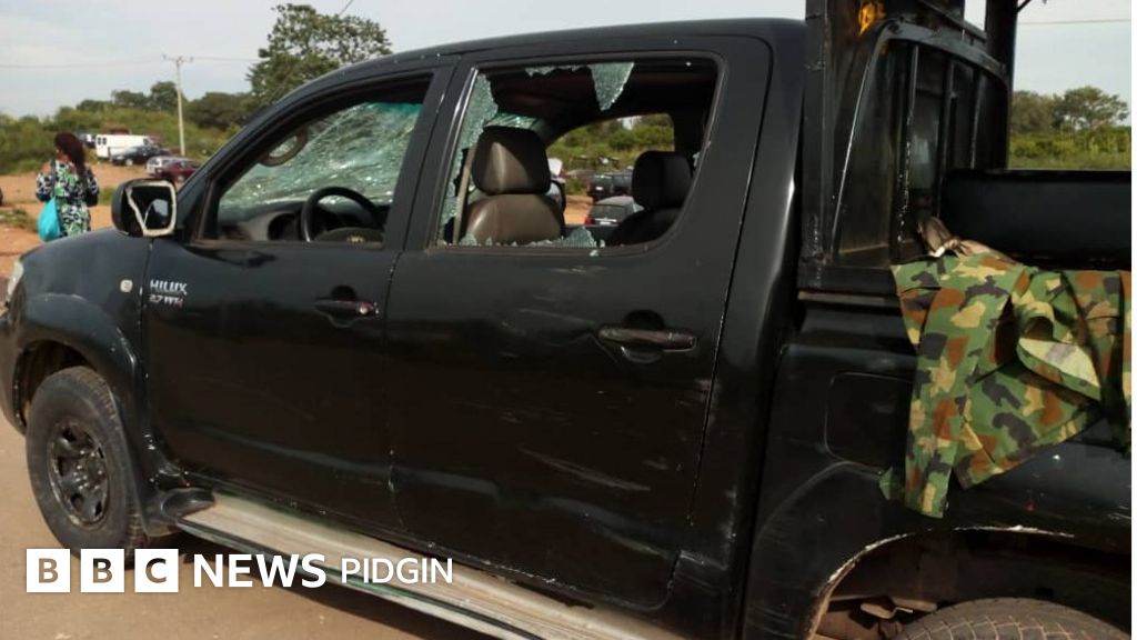 'Dem even try to over power di soldier escorts and try to run away wit di guns and bullets wey di soldier dey escort. Na dis one make soldiers to begin open fire free demsef. As e happun, soldiers of 102 Guards Battalion wey be di army division for di area where di attack happun rush to help di convoy'. Di General add.