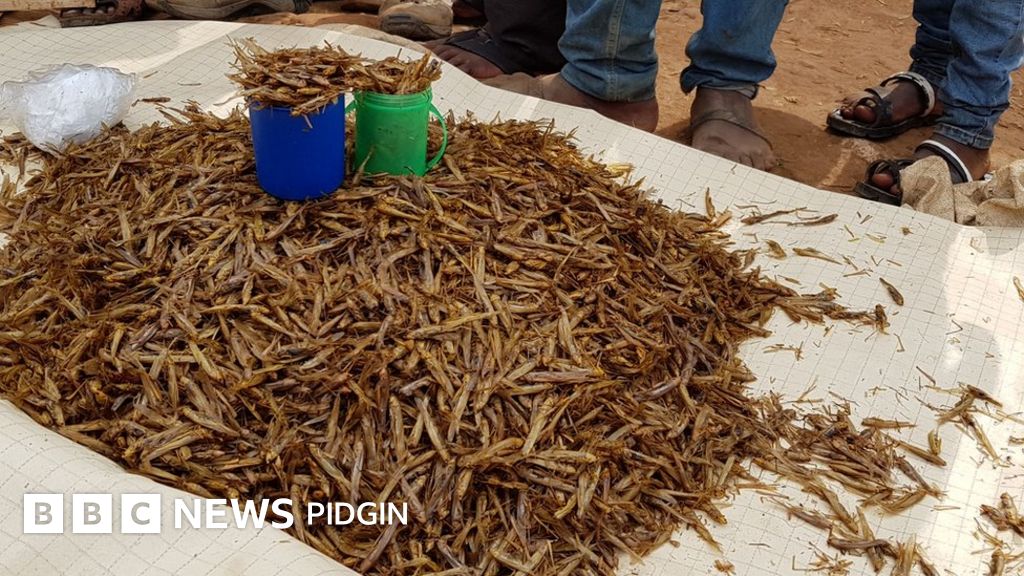 Na grasshopper season for Uganda, wia to dey chop di insect dey sweet dem for belle well well - weda dem boil am or dem fry am.