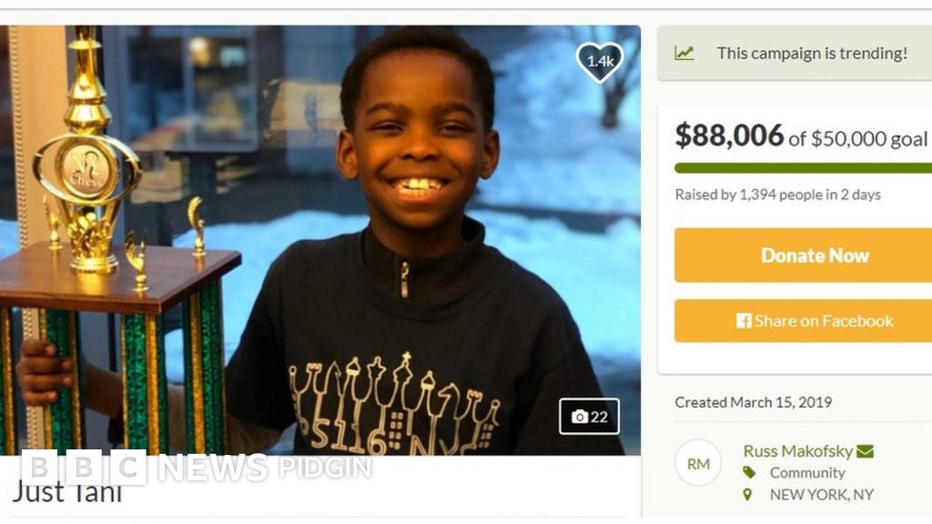 One American man, Russell Makofsky na im start GoFundMe page for pipo to donate moni for house for Tanitoluwa Adewumi and im family wey dey sleep for homeless shelter for America.