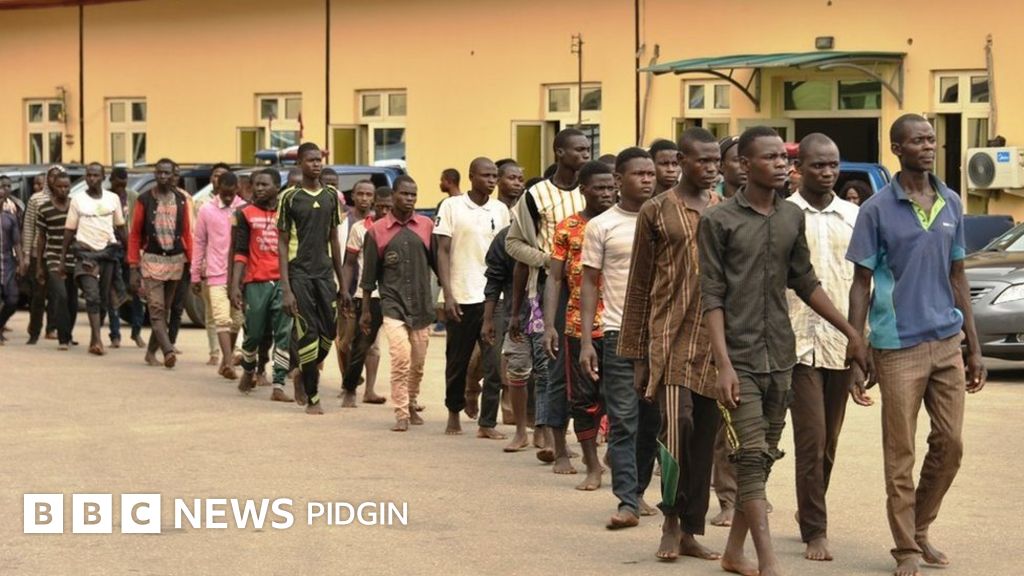 One of di men dem detain, Shuaibu Haruna, say im commot Jigawa State to work for Lagos with im motorcycle. Im say im get have one wife and one son, but say e need to double im income to cater for im family.