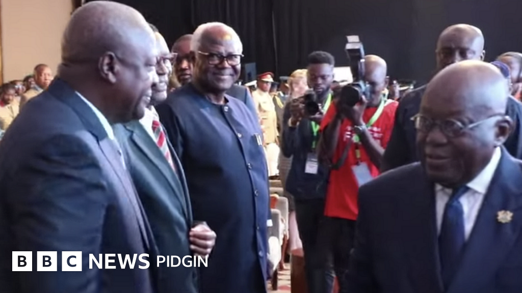 De President start dey greet de dignitaries warmly but as he catch John Mahama en turn, noor he speed up.