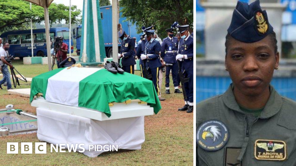 Late Flying Officer, Tolulope Arotile, Nigerian Air Force's (NAF) first female combat helicopter pilot, wey die for accident on 14 July, 2020 receive full military honours on Thursday morning wen dem bury her for National Military Cemetery in Abuja.