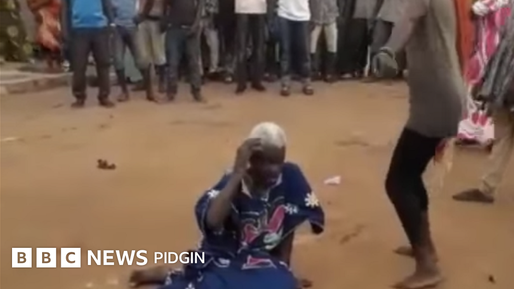 Viral video which dey circulate show how dem surround de old woman, dem use objects knock en head, slap am, whip am several times as she dey sit on de ground until make unconscious den later die.