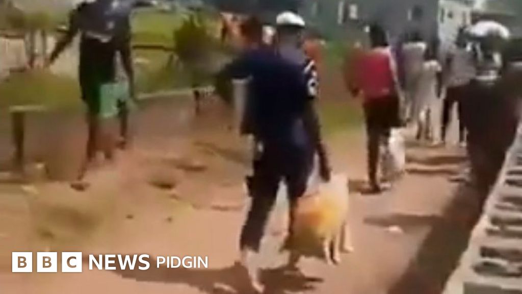 Im video come go viral across Nigeria as pipo dey wonder how di officer wear im uniform dey cari bags of food instead of am to prevent pipo make dem no loot di warehouse.