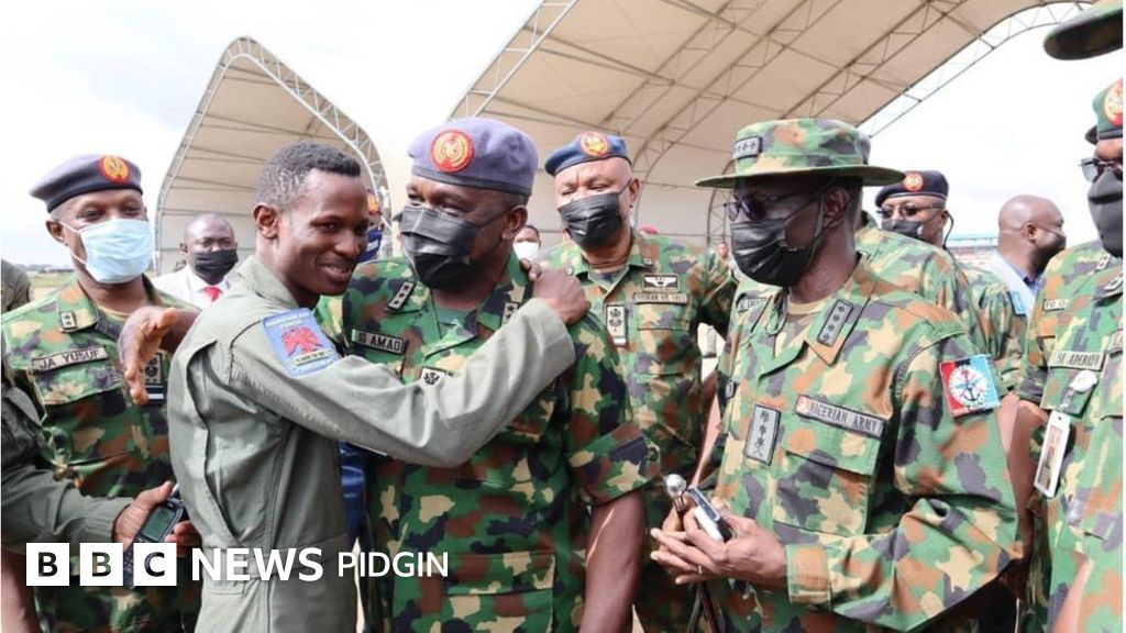 "Luckily, di gallant pilot of di aircraft, Flight Lieutenant Abayomi Dairo, successfully eject from di aircraft. E use im survival instincts, di pilot, wey came under intense ground fire from di bandits, try to hide from dem and take cover for nearby area until morning.