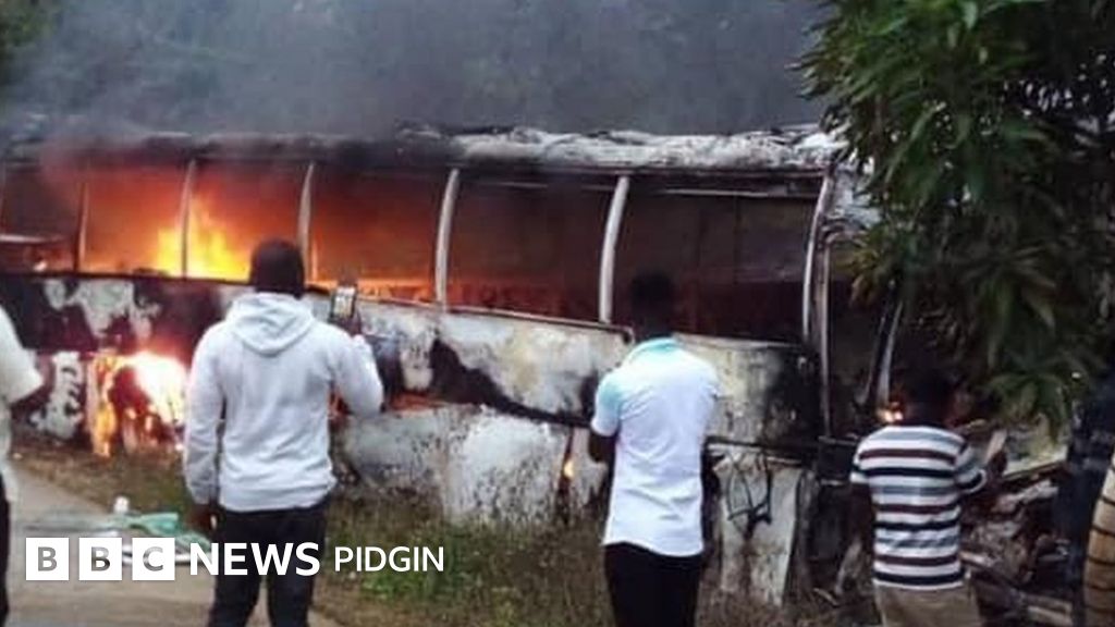 Eyewitnesses say de commercial bus catch fire after crushing into abandoned vehicle for Akomadam, Ashanti Region.