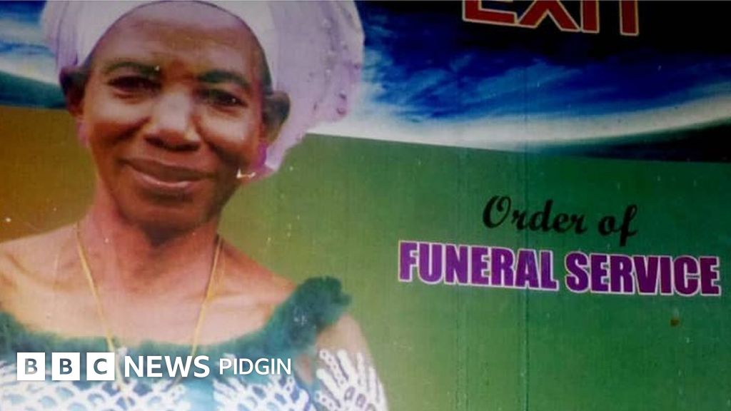 Di tin cause gbege as sympathizers and relations of di late woman bin don gada under different canopies for late Madam Grace compound dey bsing and chant as dem dey wait for di body to start di burial only for word to come say di bodi don miss for mortuary.