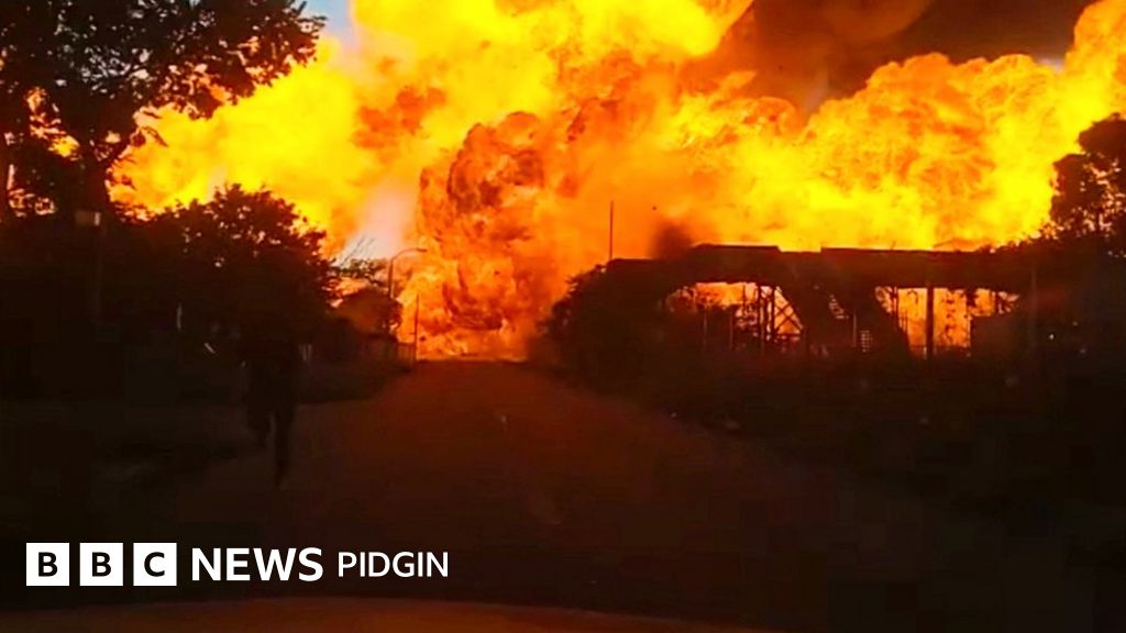 As firefighters try to quench di fire, anoda big second explosion happun - wey dem capture on amateur video - e destroy one fire engine and two motor vehicles.