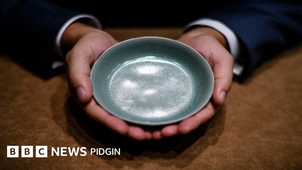 Dem say dey sell dis bowl wey no easy to see for any where, after 20 minutes of serious bidding from person wey use phone to price, and one person wey dey inside di room.