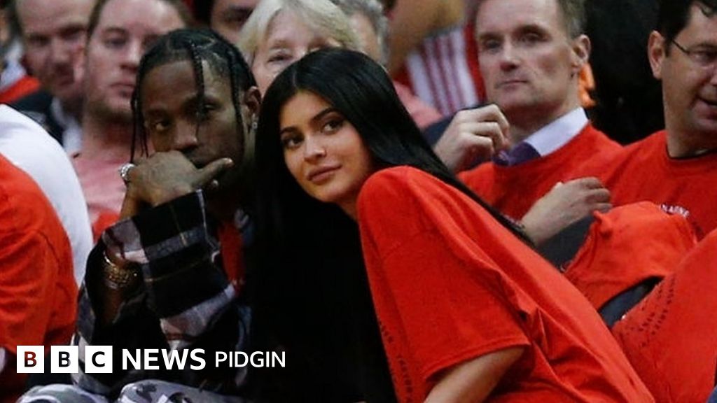 Kylie Jenner wey be 20 year old business woman wey dey sell makeup things, don born her first pickin with her US rapper boyfriend, Travis Scott.