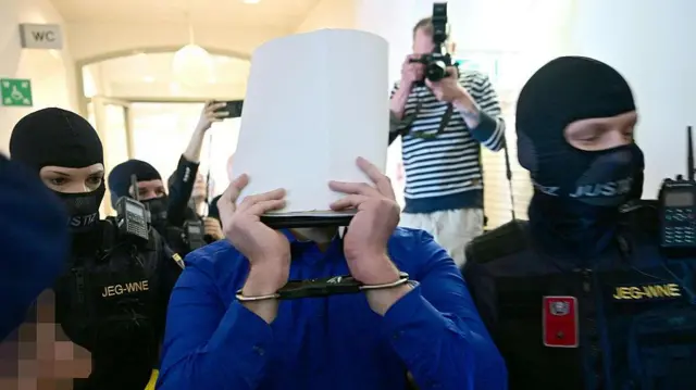 Beran A. został wprowadzony na salę sądową w niebieskiej koszuli i kajdankach. Odpowie na zarzuty terroryzmu i innych przestępstw.