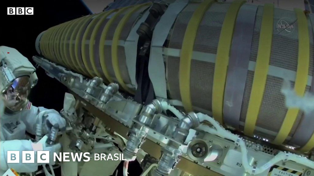 A Nasa, agência espacial dos EUA, divulgou um vídeo de astronautas americanos trabalhando do lado de fora da Estação Espacial Internacional.