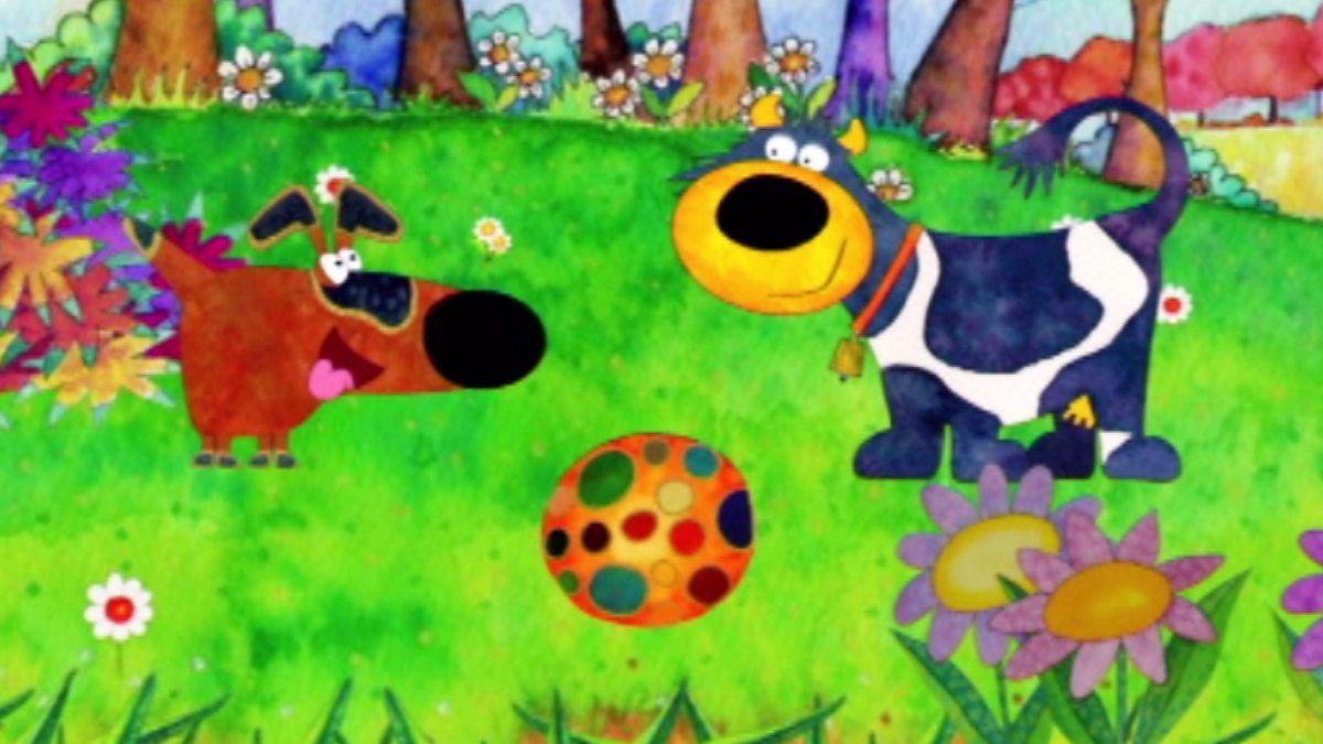 Gaelic children's cartoon. Blarag meets a little white dog who is very upset. The little dog turns out to be her friend Paids! But he has lost his brown colour and is very worried, so he asks the little cow to help him find his colour again. They look everywhere, but the task is not an easy one.