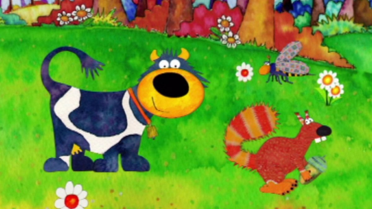 Gaelic children's cartoon about a cow. Connie has fun playing with the little animals in the fields, but then she meets a very busy squirrel.