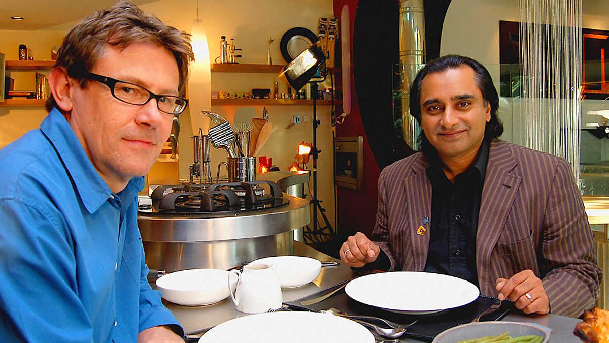 Nigel Slater hosts a biographical chat show exploring the lives and loves of celebrities through their experiences of food. Sanjeev reminisces about school dinners, and reveals how he was embarrassed about being Indian as a child. His fictional mum and dad from the Kumars rustle up prawns in chili, and some snails in garlic. And Sanjeev is taken down memory lane by college chums Peter Robinson and Nitin Sawhney, who challenge him to make an entire menu from a Chinese Takeaway.