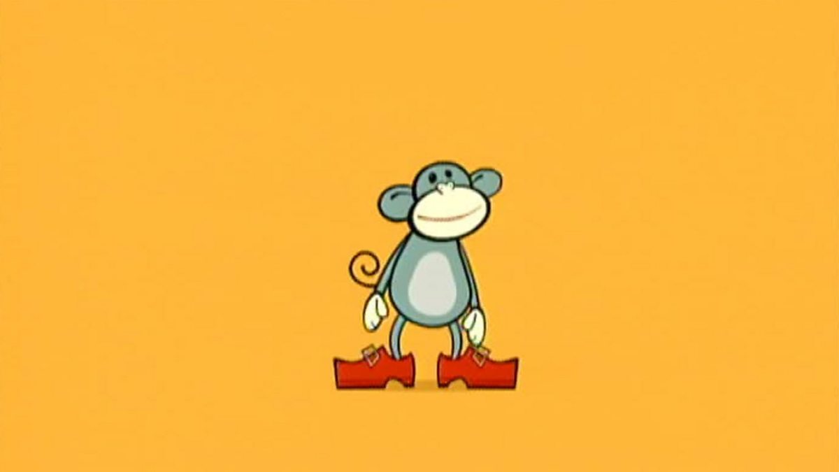 Bruno walks, runs and jumps in his fancy red shoes.