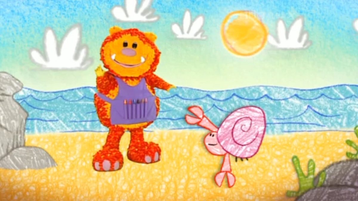 Sgrìobag draws a crab called Pàdraig, who is starting to outgrow his shell. So they take a trip to the beach to see if they can find anything for Pàdraig to live in. Sgrìobag scribbles him a beautiful sandcastle, but a big wave washes the sandcastle away. Pàdraig is worried he will never find a new home, but a look at the Squiggle Pad gives Sgrìobag a better idea.