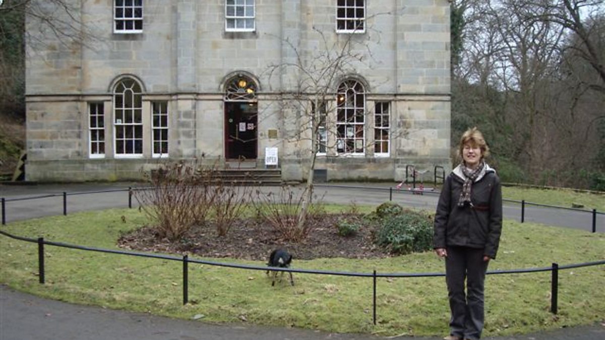 Catrìona Mhoireach còmhla ri Aideen O'Malley ann am Pàirc Hermitage of Braid an Dùn Èideann. Catriona Murray with Aideen O'Malley in Hermitage of Braid Park in Edinburgh.