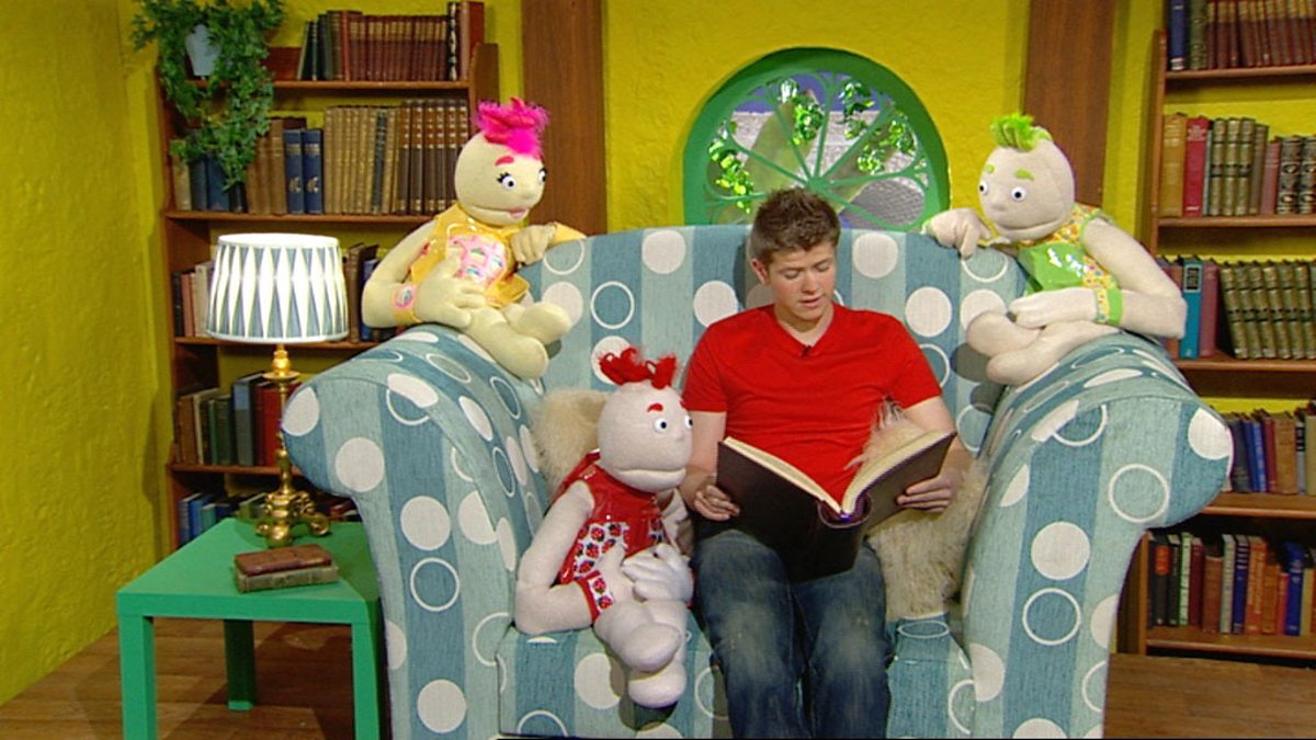 Tha Seoc a leughadh stòiridh dha charaidean san taigh aran chridhe. Jack reads a story to his puppet friends in the Gingerbread House.