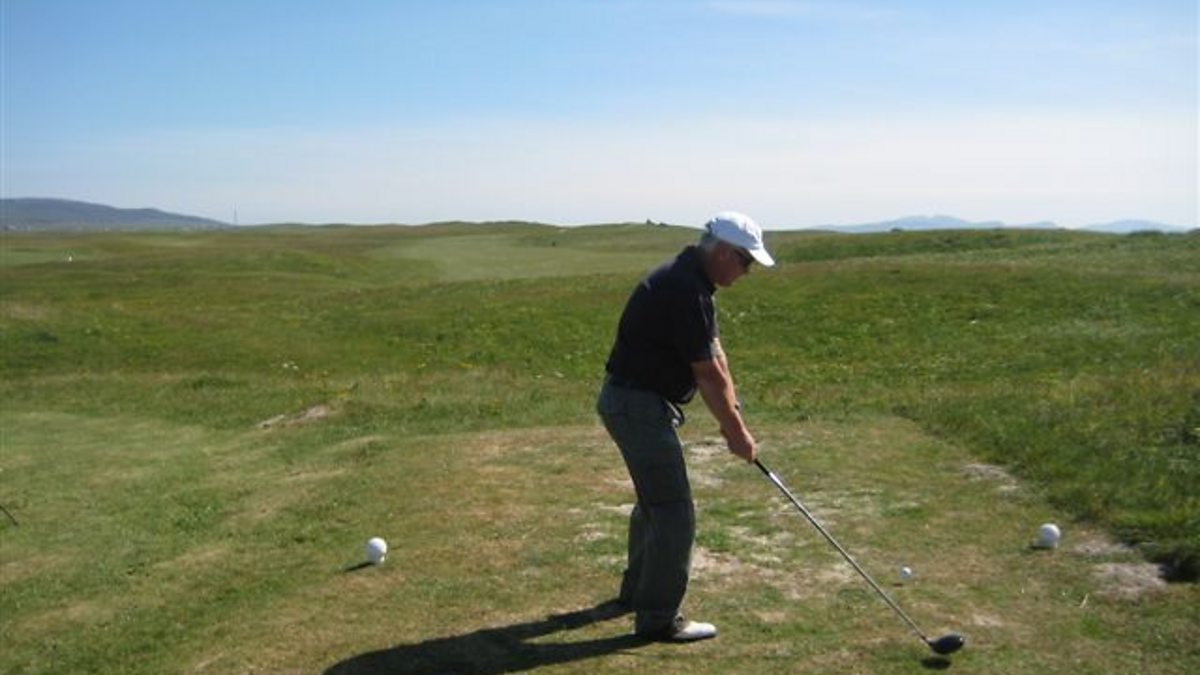Iain Moireasdan air chuairt raointean goilf na h-eileannan an Iar 's e air Asgernish a ruighinn. Iain Morrison visits Western Isles golf courses, including Askernish.