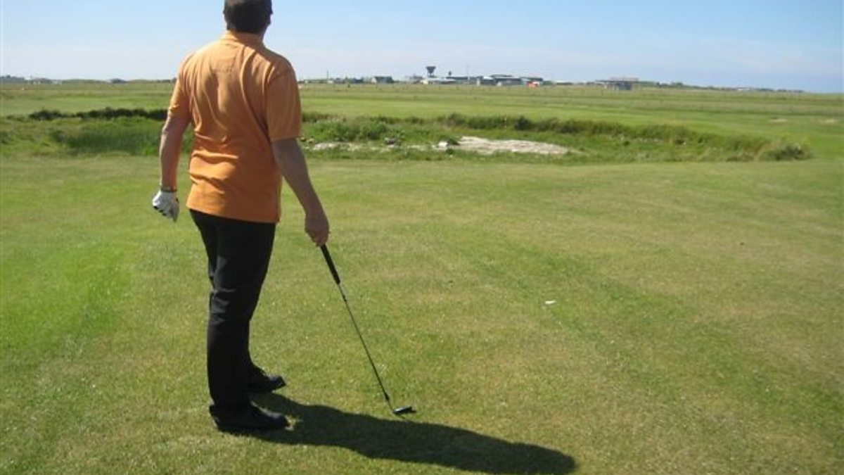 Iain Moireasdan an-diugh a' cur cuairt air raon goilf Beinn nam Fadhla. Iain Morrison visits Western Isles golf courses, including Benbecula.