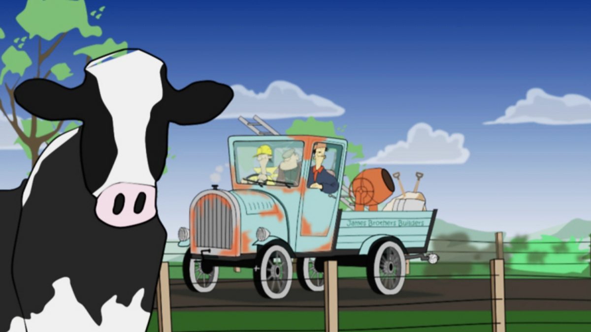 The colourful and unusual world of Fraochy Bay, a miniature metropolis somewhere off the fringes of the map. Local builders the James Brothers get their priorities mixed up.